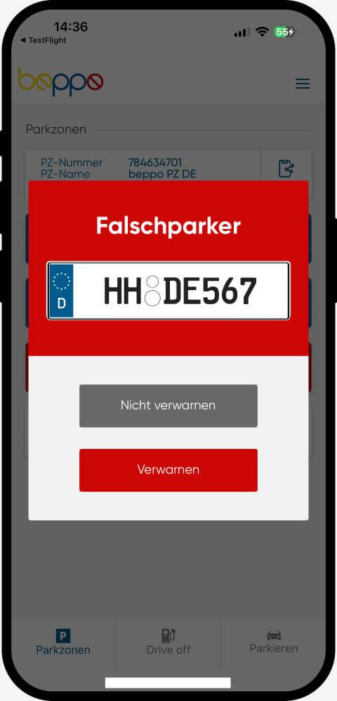 Mit der beppo App verwalten Sie Besucher und Kunden, kontrollieren Fahrzeuge und stellen bei Bedarf eigenständig Verwarnungen aus. Tankstellenbetreiber erfassen unbezahlte Tankvorgänge schnell und unkompliziert – alles zentral in einer einzigen Anwendung.